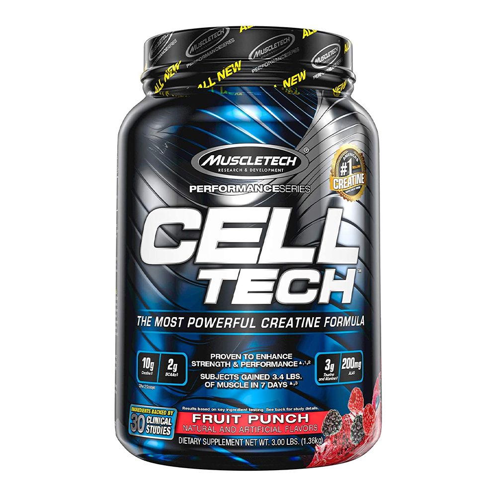 Cell-Tech is a scientifically engineered hardcore creatine formula designed for athletes and bodybuilder who have trouble putting on size and strength. This patent-protected creatine formula includes fine ingredients supported by over 30 research studies conducted over decades. Cell-Tech is loaded with powerful muscle building ingredients where each serving of Cell-Tech delivers 3 grams of creatine HCI and 7 grams of HPLC-certified creatine monohydrate.